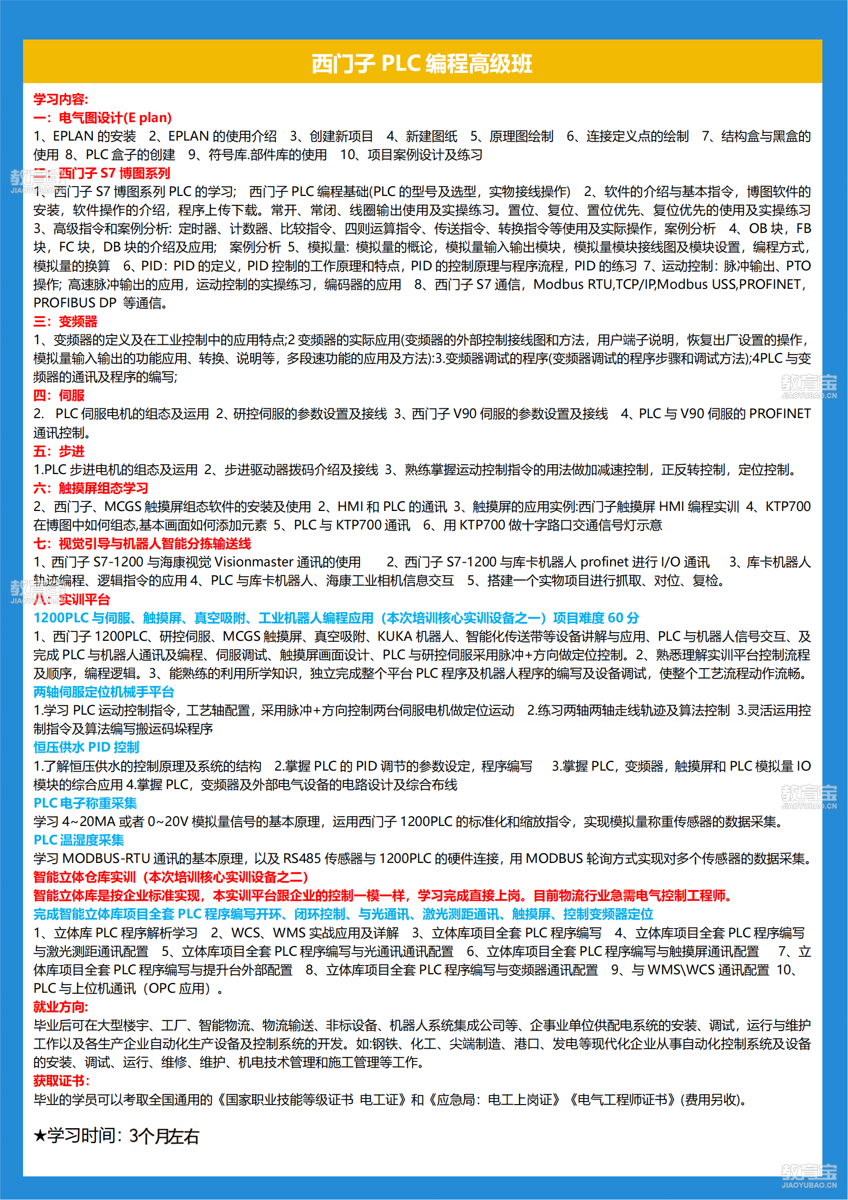 开设班级:西门子S7-1200/1500编程+项目实操(1-3个月)
