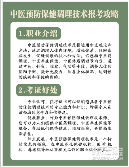 在国家"治未病"健康战略深入推进的背景下,中医预防保健调理师成为健康服务领域的核心人才。随着慢性病防控需求增长和民众健康意识提升,掌握中医特色调理技术的专业人员在健康管理机构、社区卫生中心、养生企业等领域备受青睐。持证人员不仅能获得稳定就业机会,职业发展空间广阔。
