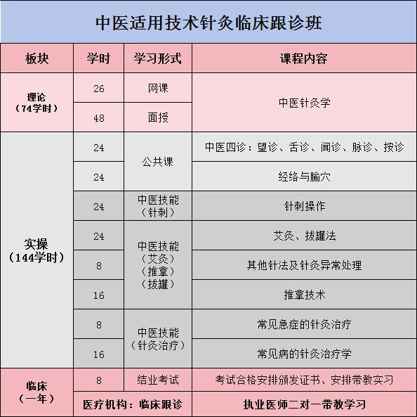 执业中医师临床带教,手把手教学,医疗机构近距离观摩医师针刺手法,中医科室即为课堂,一次培训一年免费复训!系统学习中医外治技术对各种常见病的诊断特色针法治疗,针刺手法事的临床研究和实操。